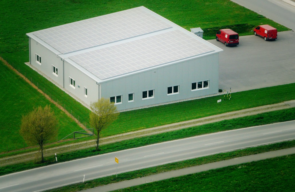 Das modernisierte Firmengebäude in Äpfingen zeugt vom tragenden Umweltbewusstsein des Sanitärbetriebes in Sachen Nachhaltigkeit. Dies ist am Beispiel von zahlreichen thermischen Solaranlagen auf dem Firmengebäudedach zu sehen.