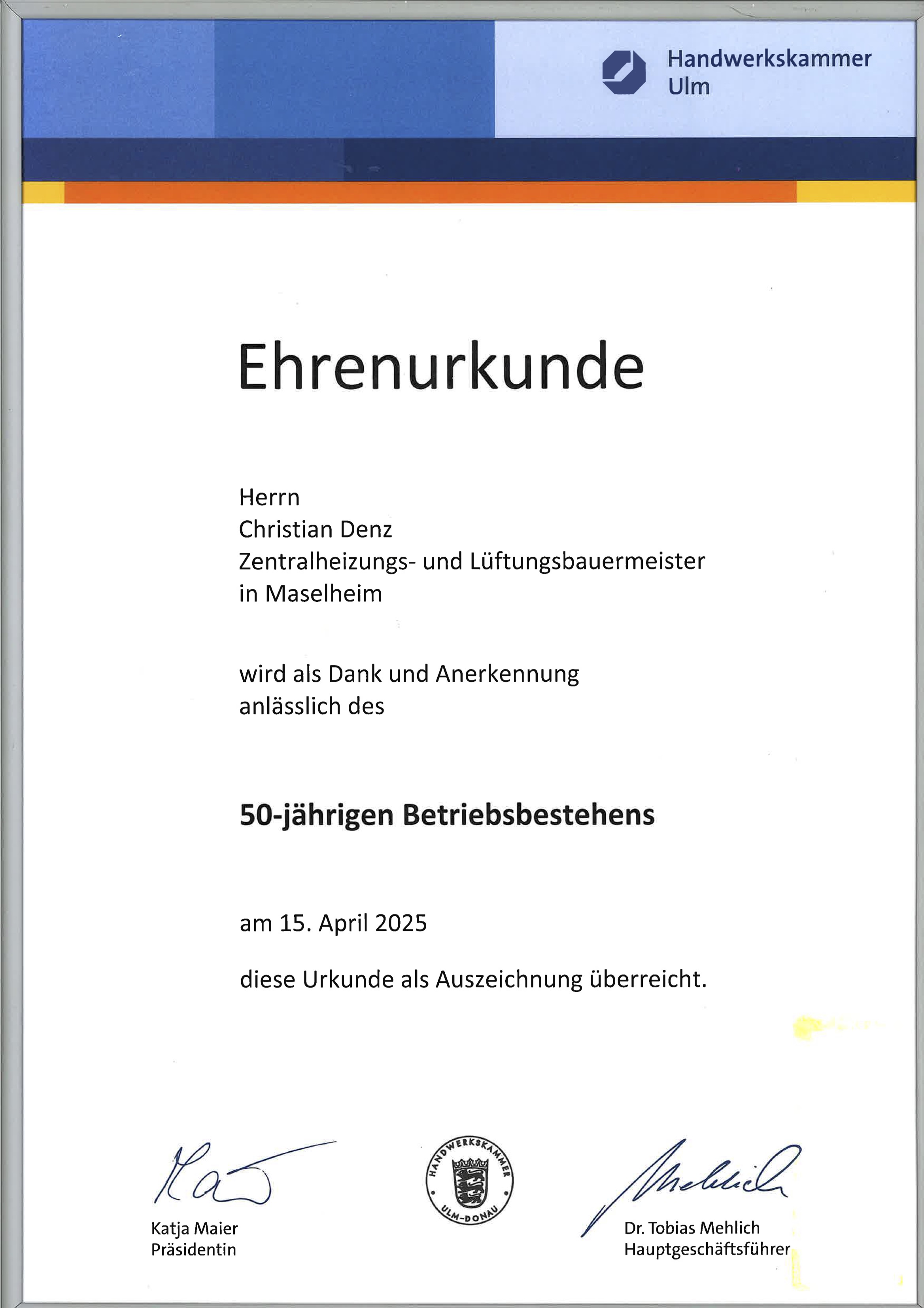 Wir feiern 50 Jahre Christian Denz Heizungsbau – ein halbes Jahrhundert Handwerk und Qualität.